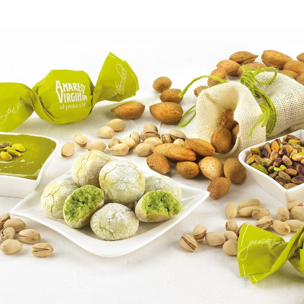 Traditionnel petits biscuits tendres aux amandes, aromatisés à la pistache